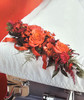 Add a detailed touch with this red rose and alstroemeria corner casket piece.