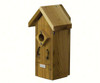 Country squire peak roof house with predator guard has a 1 ½” universal entrance. Western Red Cedar with front clean out. This house is great for wrens, black-capped chickadees, tufted titmice, white-breasted nuthatches, violet-green swallows, bluebirds or tree swallows. It also has groves in wood below entrance for young birds learning to exit. All Stovall products are hand-sanded and crafted with pride in Michigan.