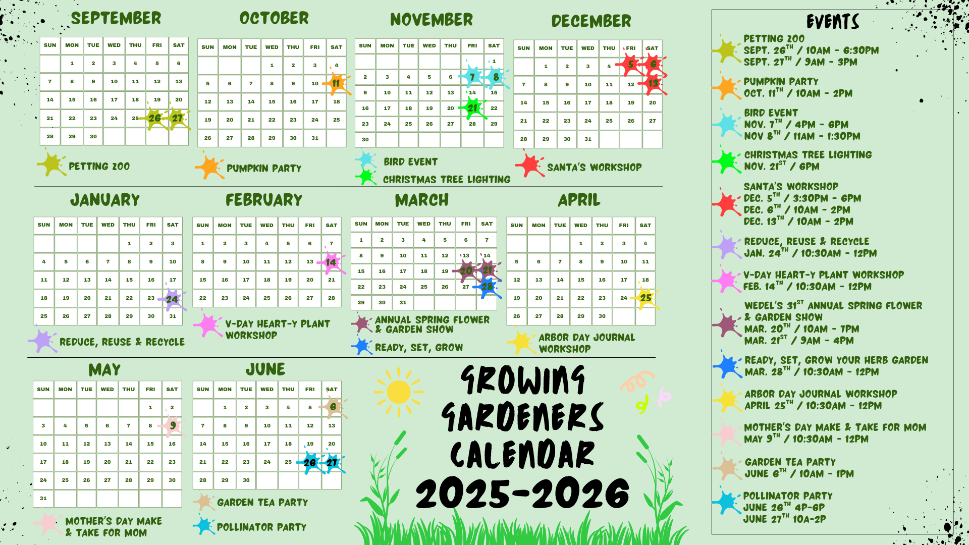 Upcoming Events for Wedel's Growing Gardeners 2025-2026 Season